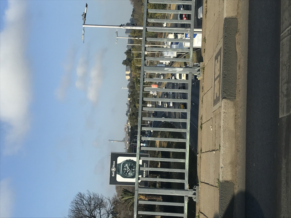 - "The image presents an elevated, static view from a pedestrian bridge over the M1 highway in the Rosebank area of Johannesburg, South Africa, looking south towards the city center" by FM-4m08G2, licensed under CC BY 4.0