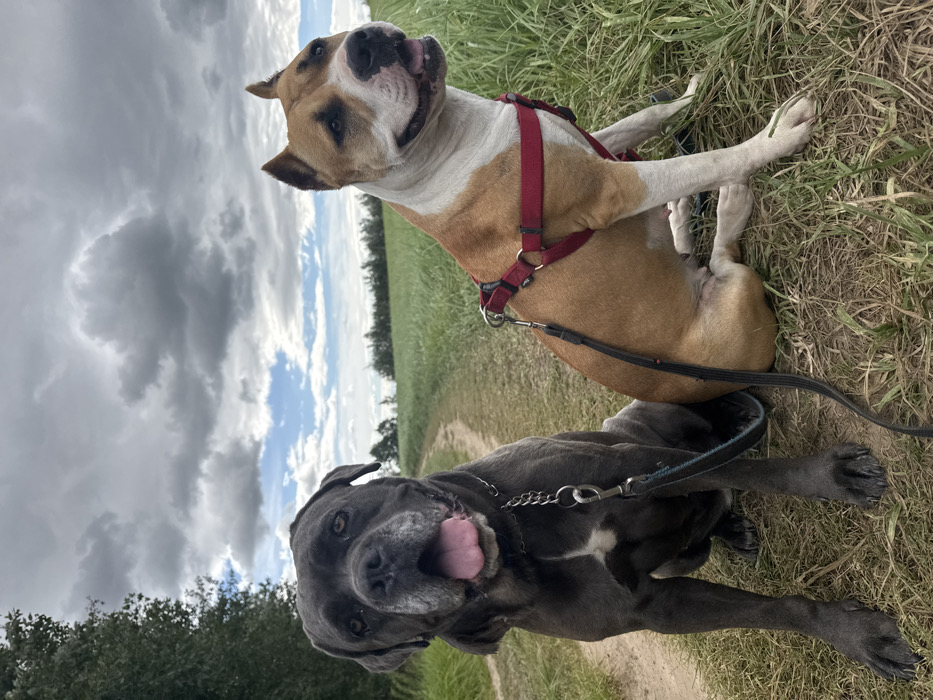 - "The image depicts two dogs positioned side-by-side on the edge of a dirt path and a grassy field, likely in Квасоўскі сельскі Савет, Belarus" by FM-osXZC2, licensed under CC BY 4.0