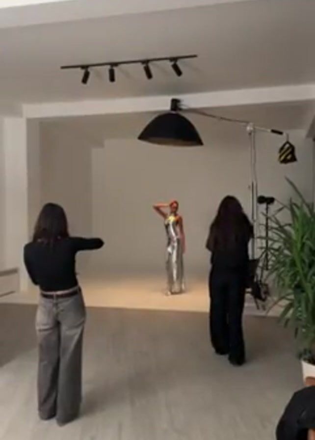 behind-the-scenes look at a fashion photoshoot in a studio with white walls and good lighting