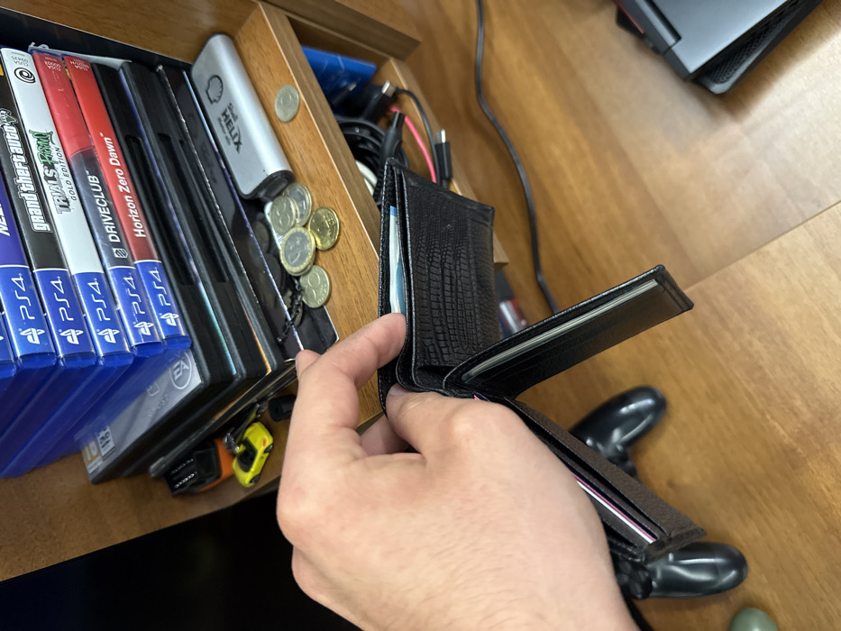 - "A right human hand is depicted holding an open black bi-fold wallet with a textured, possibly reptilian, surface" by FM-AnqY53, licensed under CC BY 4.0