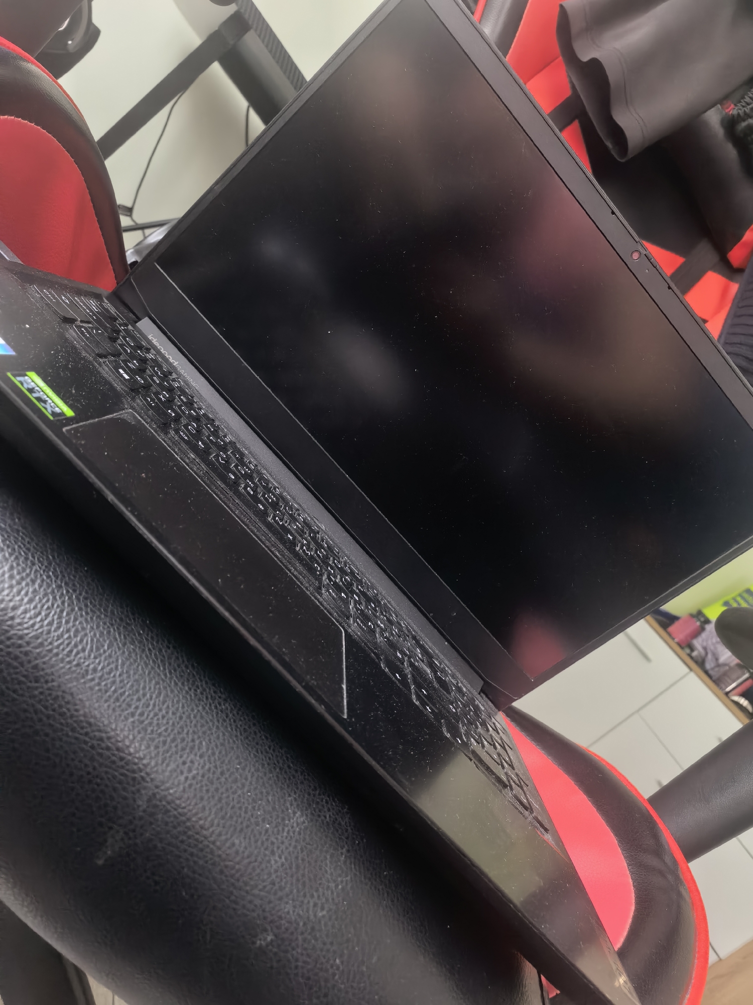 - "A black laptop with a black screen is on a black and red gaming chair" by FM-0lwZK2, licensed under CC BY 4.0