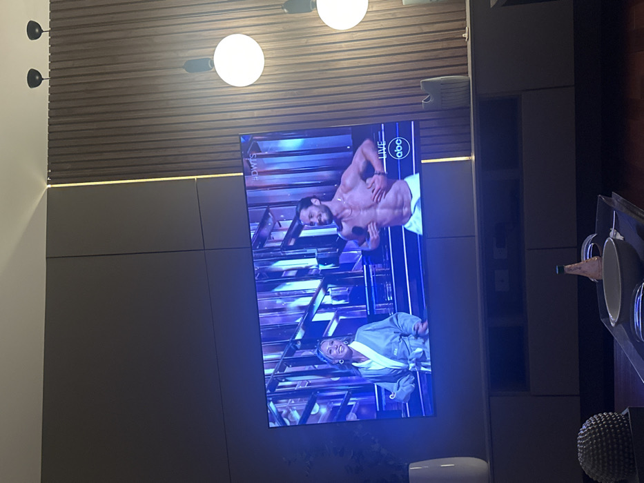 A flat-screen TV is showing a segment of "Dancing With the Stars