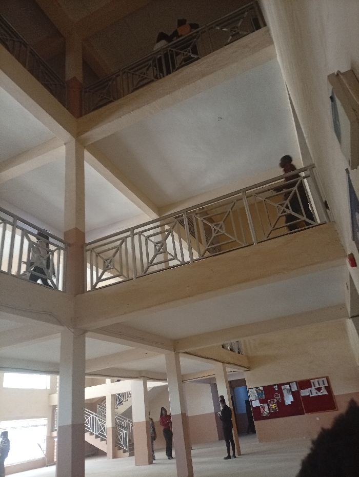 - "The scene is situated within a multi-story building in Jos, Nigeria, characterized by exposed beige-colored structural beams and columns, white ceilings, and two-toned walls with a darker lower section" by FM-LLgxz1, licensed under CC BY 4.0