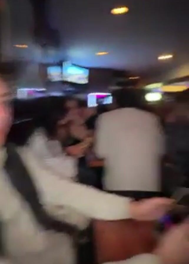 The video is taken in a dimly lit, crowded bar