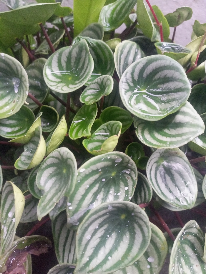 - "The image displays a close-up, top-down perspective of a cluster of Peperomia argyreia (Watermelon Peperomia) plants, located in Zee Pin Kone, Myanmar" by FM-r4HQG2, licensed under CC BY 4.0