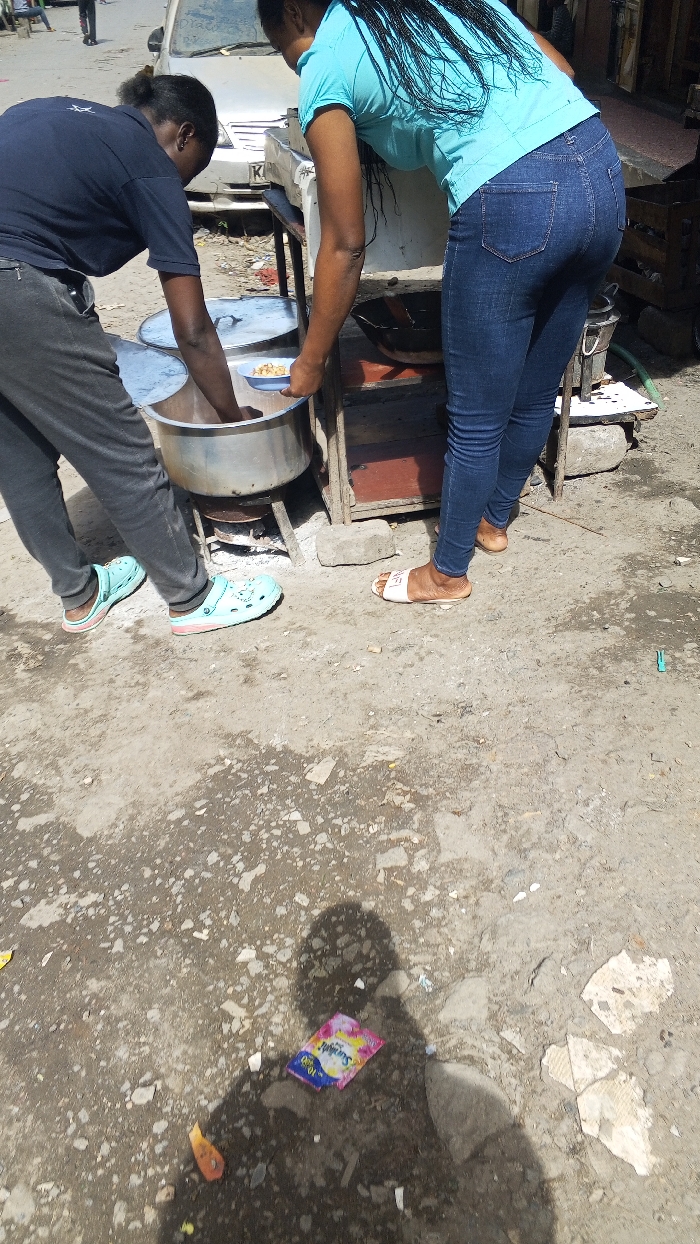 The image displays an outdoor street food vending operation consistent with an urban setting in Nairobi, Kenya