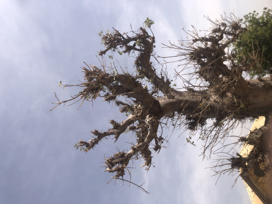 The image depicts a large, mature, deciduous tree, possibly a baobab or similar species, located in Dabawa, Nigeria