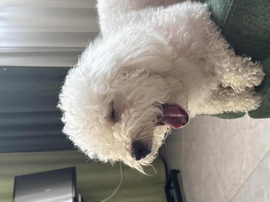 - "A white, curly-haired dog, consistent with a Bichon Frise breed, is captured in an indoor setting within the city of Yerevan, Armenia" by FM-AtE073, licensed under CC BY 4.0