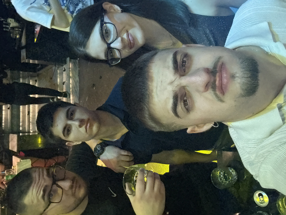 - "A close-up indoor photograph depicts four individuals, three males and one female, posing in a dimly lit environment, likely a bar or club" by FM-jbGTI3, licensed under CC BY 4.0