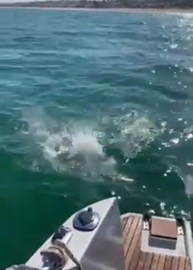 A person jumps from a boat into the ocean