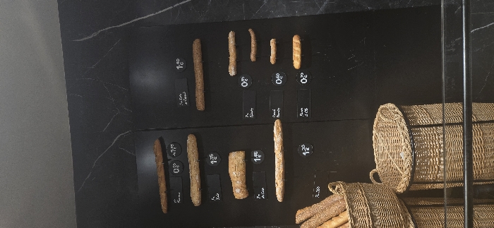 - "Various types of bread sticks are arranged on a black surface with attached price tags" by FM-a7OYg1, licensed under CC BY 4.0