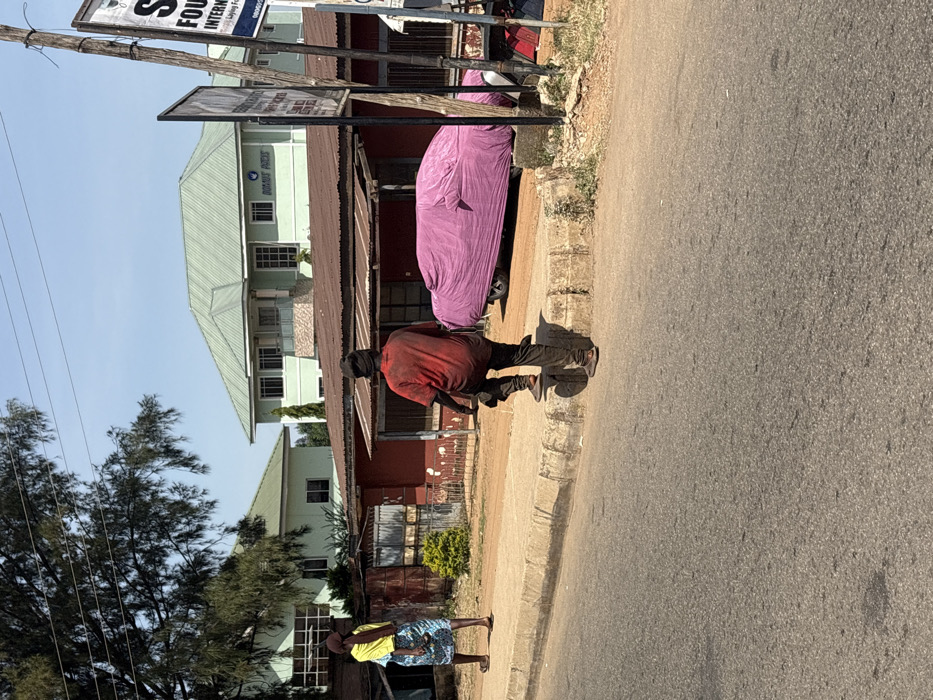 The image captures a sunlit street scene in New Stadium, Nigeria