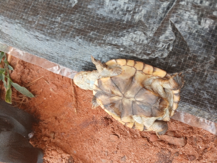 - "A small tortoise is depicted inverted, its yellowish-tan plastron, marked with darker brown patterns, facing upwards" by FM-Oh2n63, licensed under CC BY 4.0