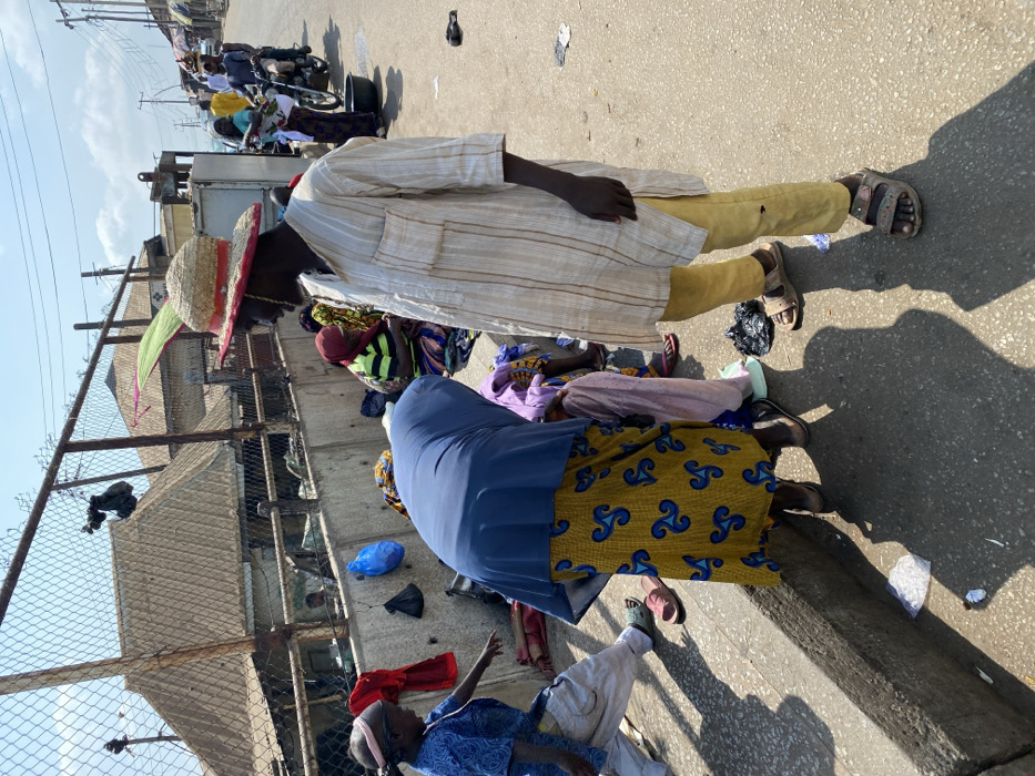 The image depicts an outdoor street scene in Lokoja, Nigeria, under bright daylight