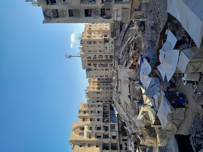 - "The image depicts a devastated urban area in al-Qarara, Palestinian Territory" by FM-V8KrL2, licensed under CC BY 4.0