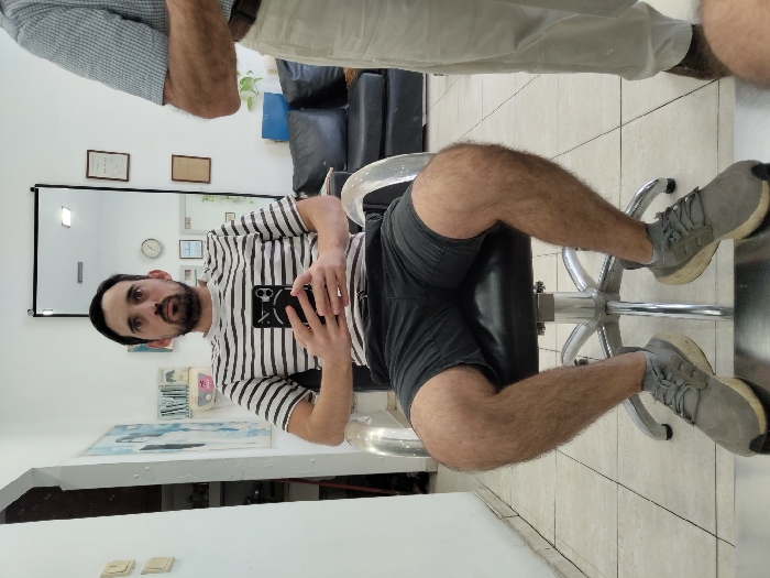 - "A man is seated in a black hydraulic salon chair within a hair salon, presumably in Tel Aviv, Israel" by FM-3Ip2o1, licensed under CC BY 4.0