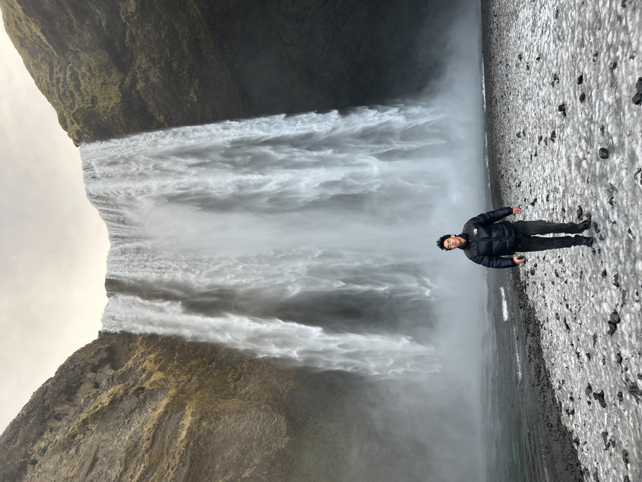 - "A full-frame, portrait-oriented image displays a single male individual standing in the foreground before the expansive Skógafoss waterfall in Iceland" by FM-JkXv43, licensed under CC BY 4.0