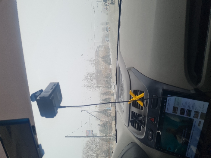 - "The image depicts an interior view from a vehicle, looking out through its front windshield onto a city street in Urgench, Uzbekistan, under hazy or foggy winter conditions" by FM-imY3G2, licensed under CC BY 4.0