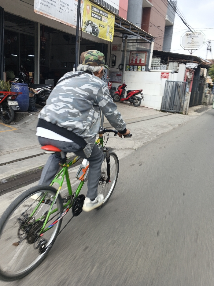 - "An individual is observed cycling on a paved road in Margahayu, Indonesia, moving away from the camera" by FM-rgG523, licensed under CC BY 4.0