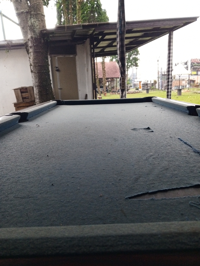 - "The image displays an outdoor scene in the city of Voa Yeav, Cambodia, viewed from a low perspective across a damaged pool table" by FM-LMItj1, licensed under CC BY 4.0