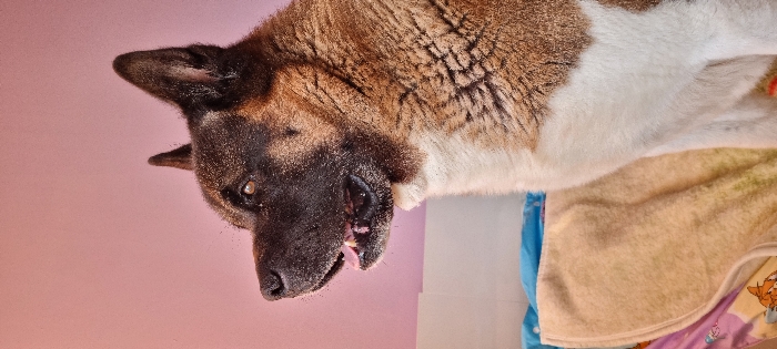 - "A large domestic canine, consistent with an Akita breed, is depicted in a close-up profile view, facing left, within an indoor environment in Dupnitsa, Bulgaria" by FM-l4hwp2, licensed under CC BY 4.0