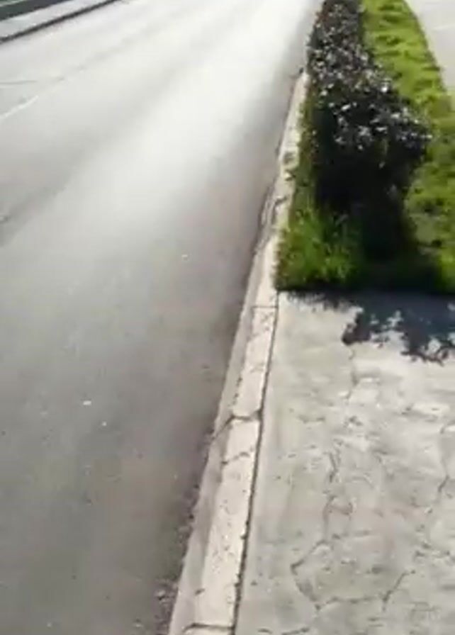 The video begins with a close shot of a person's foot on a sidewalk