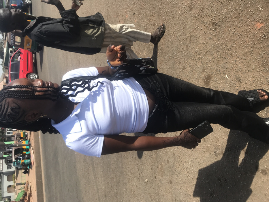 The image depicts an outdoor urban scene in the city of Jos, Nigeria, under bright daylight