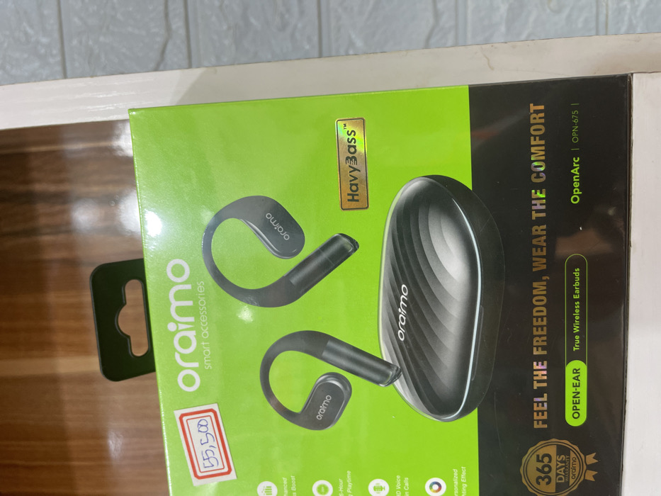 - "The image displays a retail box for Oraimo OpenArc OPN-675 True Wireless Earbuds, situated in what appears to be an indoor retail environment in Kubwa, Nigeria" by FM-5rwtt2, licensed under CC BY 4.0