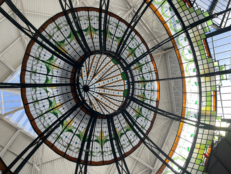 - "The image displays an upward-facing view of an elaborate, multi-tiered stained-glass dome, characteristic of the Mercado de Artesanías "El Parián" or a similar public market or gallery in Puebla City, Mexico" by FM-Ik6eJ3, licensed under CC BY 4.0