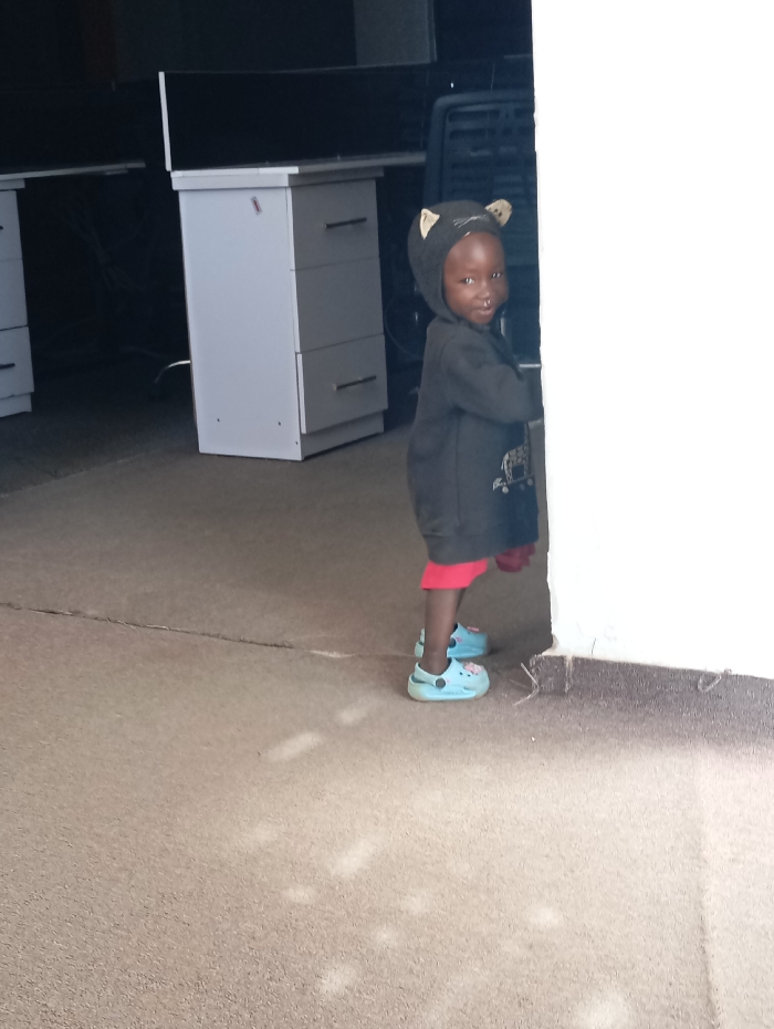 - "A young child wearing a black hooded sweatshirt with ears and light blue Crocs stands next to a white wall" by FM-hF7Ke2, licensed under CC BY 4.0