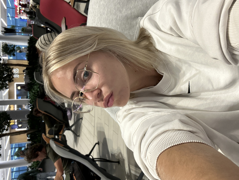 - "The image depicts a blonde woman taking a selfie in what appears to be a modern airport terminal lounge, located in Arnavutköy, Turkey" by FM-bcuvC3, licensed under CC BY 4.0