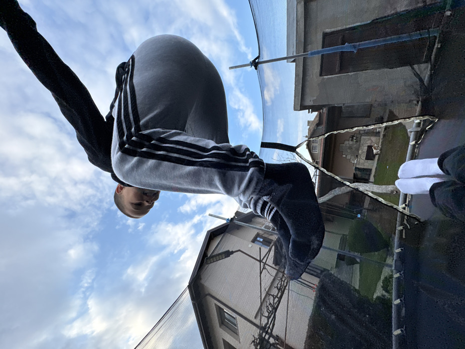 - "The image depicts a low-angle perspective from within a trampoline, capturing a young male subject in mid-air above the camera" by FM-esPQN2, licensed under CC BY 4.0