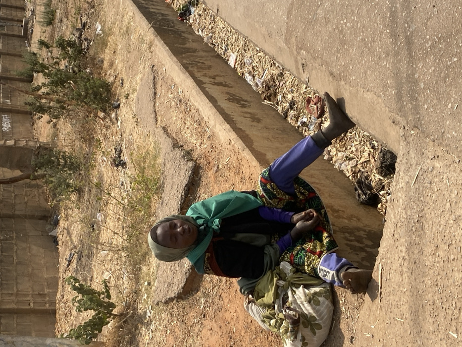 - "The image captures an individual seated on a concrete ledge bordering a roadside drainage channel in Zaria, Nigeria" by FM-upDEV2, licensed under CC BY 4.0