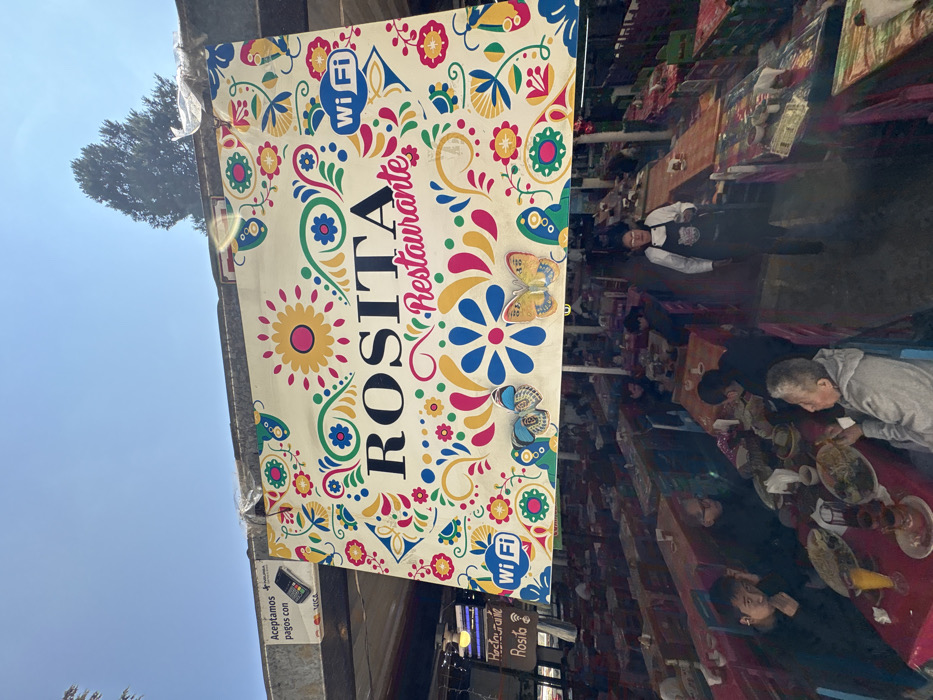 A vibrant outdoor dining area for "Rosita Restaurante" is captured from a slightly elevated perspective