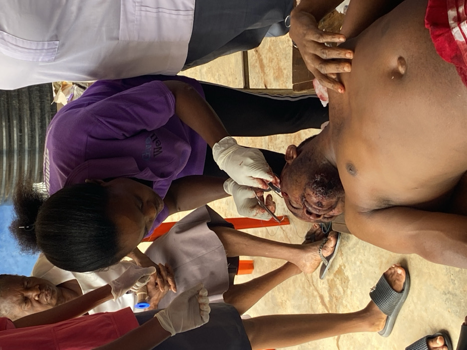- "In an outdoor or semi-open area in Achara, Nigeria, a medical procedure is actively being performed on a male patient" by FM-6XMFv1, licensed under CC BY 4.0