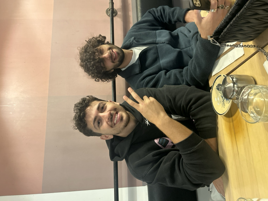 - "Two adult males are seated at a light-colored wooden table within an interior space, likely a restaurant" by FM-sNqSy1, licensed under CC BY 4.0