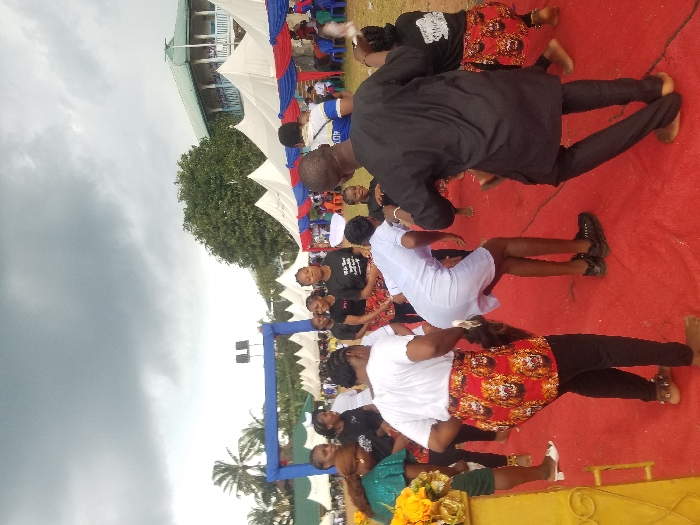 An outdoor event is depicted in Alor, Nigeria, under an overcast sky