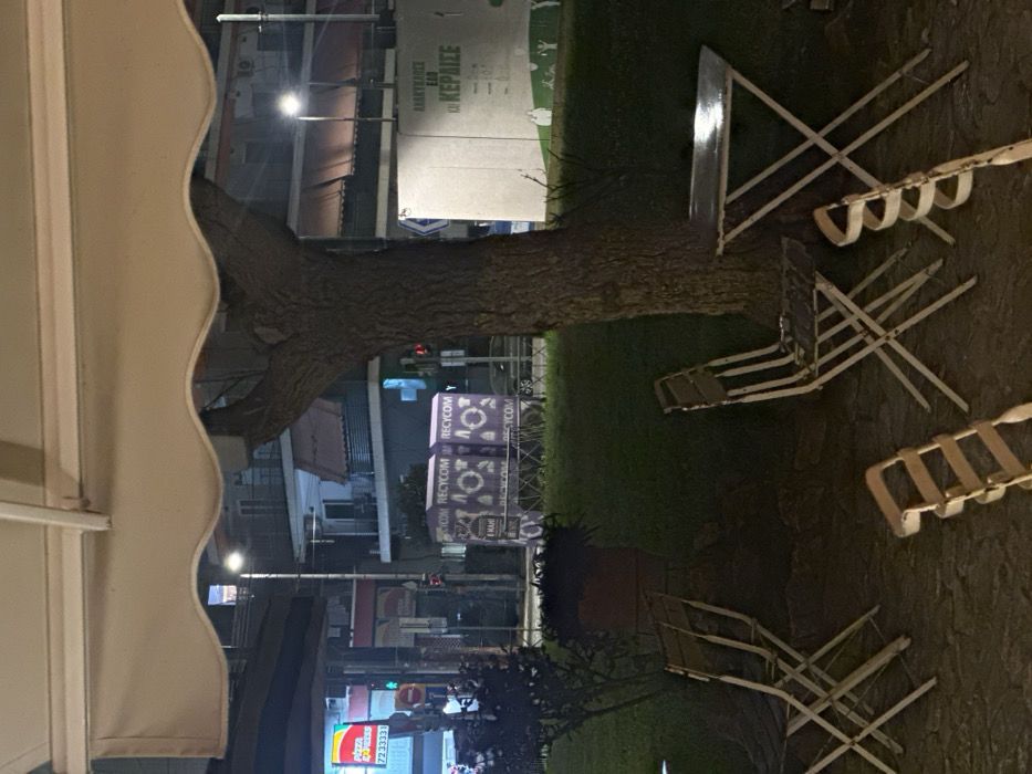 - "The image depicts an urban night scene in Kesariani, Greece, viewed from beneath a light-colored corrugated awning" by FM-jrsVD2, licensed under CC BY 4.0