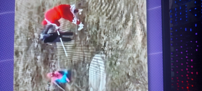 - "A screen shows a person in a red suit and white gloves on skis, seemingly fallen in the dry grass, with skis and poles scattered" by FM-Fzicx2, licensed under CC BY 4.0