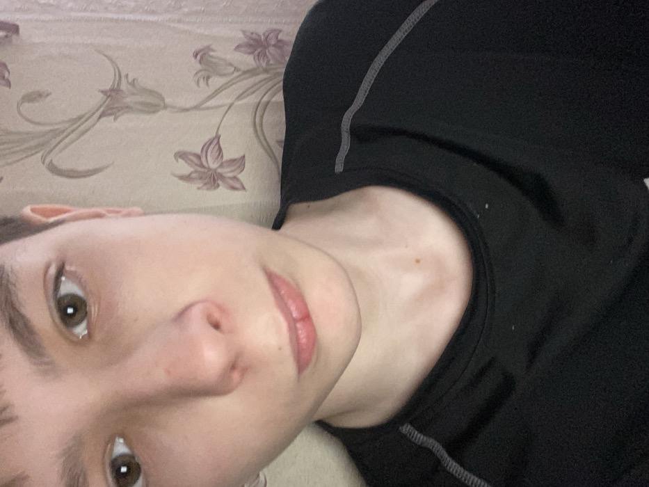 The image displays a close-up, indoor portrait of a single individual, located within a residence in Красный Маяк, Russia