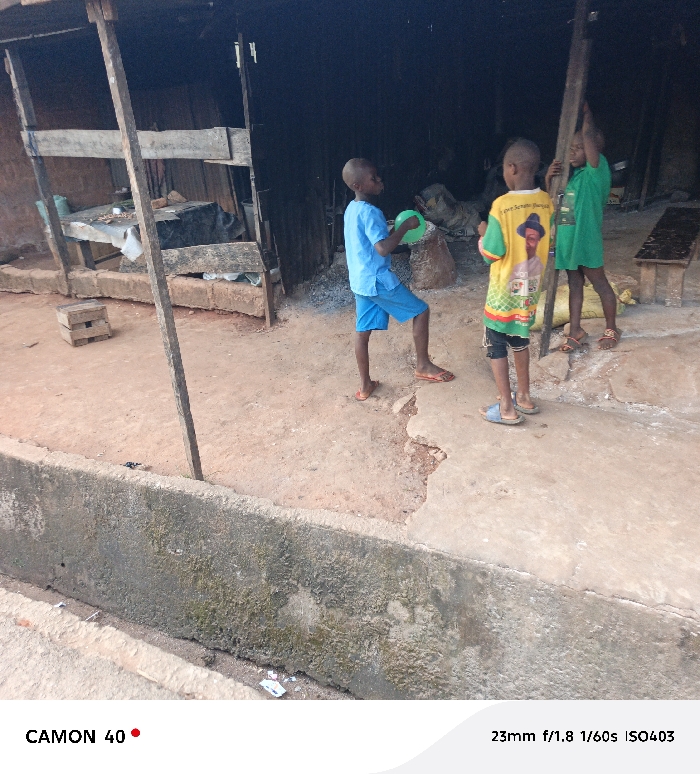 - "The scene, located in Nnewi, Nigeria, depicts three young males, likely children or pre-teens, engaged in an informal interaction on an unpaved, packed dirt ground surface" by FM-Bouv53, licensed under CC BY 4.0