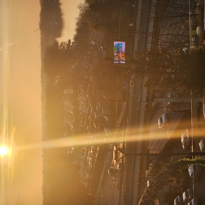 - "The image presents an elevated view of an urban landscape during either sunrise or sunset, characterized by intense golden sunlight and atmospheric haze" by FM-ldcHA2, licensed under CC BY 4.0