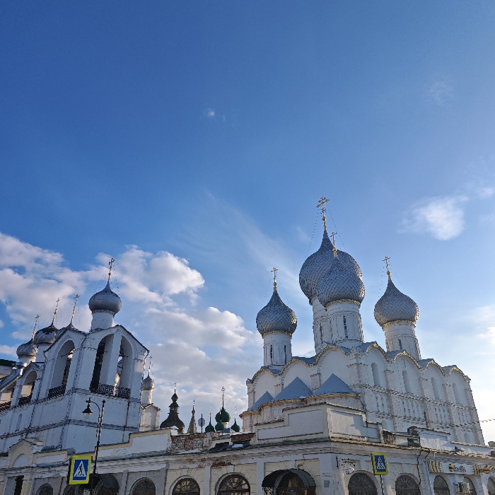 - "An architectural scene under a bright blue sky with scattered white clouds depicts multiple ornate white Orthodox church buildings" by FM-cLarj2, licensed under CC BY 4.0