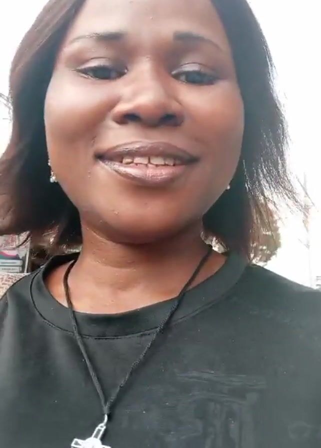 The video features a woman with brown hair, wearing a black shirt and a silver cross necklace