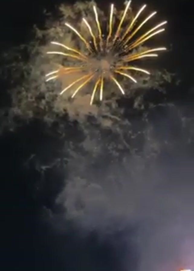 A video captures fireworks exploding in the night sky, with smoke partially obscuring the display