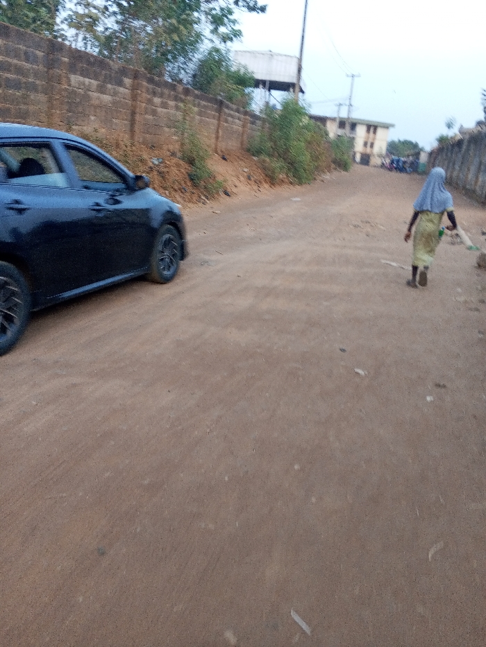 - "The scene depicts a dirt road in Oko Erin, Nigeria, with a dark-colored sedan partially visible on the left, oriented towards the background" by FM-vLLYf1, licensed under CC BY 4.0