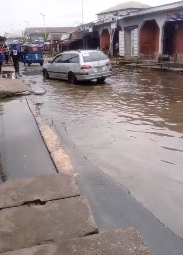 street flooded with murky water