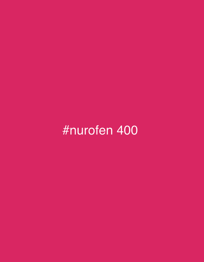 The image displays a solid fuchsia pink background. Centered on this background is white sans-serif text reading '#nurofen 400'. No individuals, physical objects, actions, or interactions are present in the visual field. The environment is monochromatic. The specified location for this image is the city of Como, Italy.