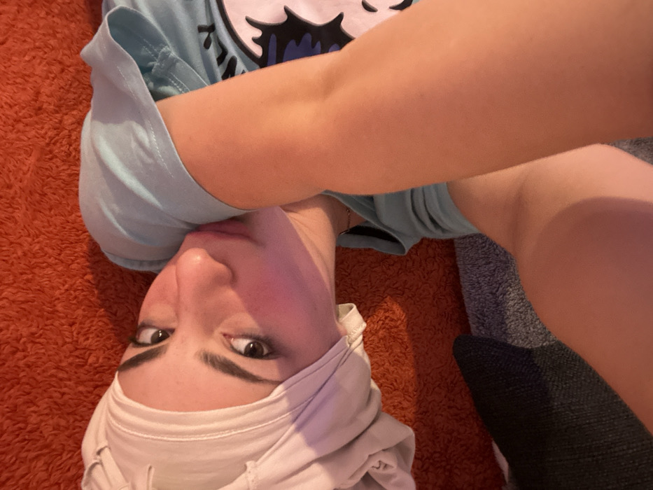 - "An individual is observed lying on a textured, shaggy orange-red surface, likely indoors, in Strasbourg, France" by FM-vVQbp1, licensed under CC BY 4.0