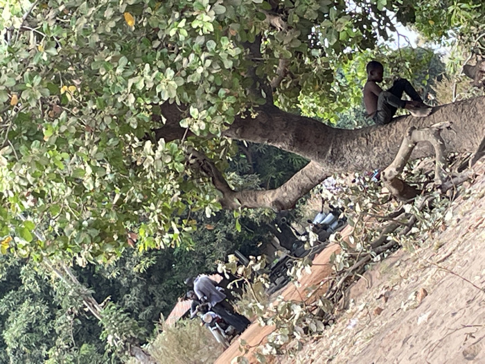 The scene, located in Osara, Nigeria, depicts an outdoor area dominated by a large tree